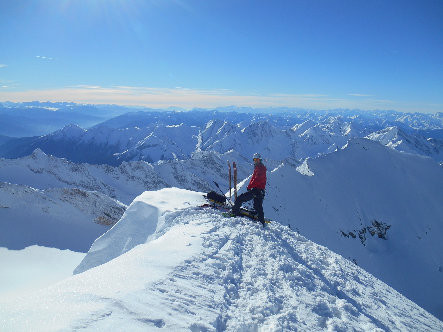 Doch wir hatten unsere Schirme nicht mit- dafür aber unsere Schi, die uns an diesem Tag eine „Jahrhundertabfahrt“ über unsere Aufstiegspur mitten durch die Nordwand runter ermöglichten.