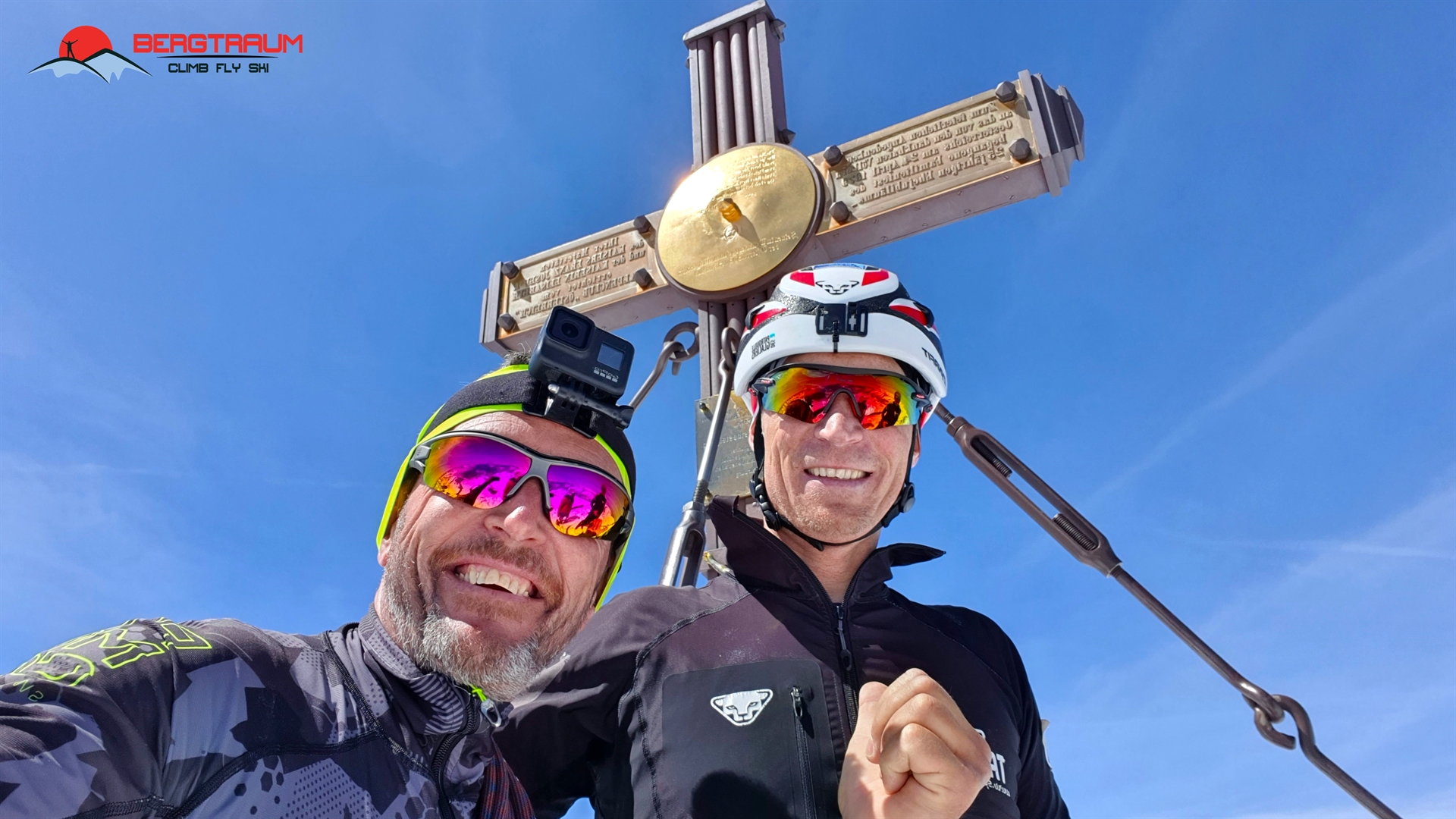 Mit einem breiten Grinsen empfing mich Andi am Gipfel oben. Gerade einmal 200 Minuten hatten wir bis ganz nach oben benötigt. Wir genossen die Ruhe am Gipfel, bevor wir uns an den Abstieg machten. Und auch hier machte Andi eine mehr als gute Figur- gleich einer Gazelle sprang mein Freund da runter! Wir hatten nachfolgend noch mit traumhaften Schneebedingungen bis fast zur Lucknerhütte den jackpot geknackt und rundeten hiermit den ersten Teil des Tages ab.