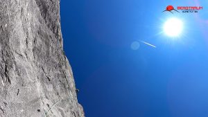 Die Zeit zum Atmen stand ganz oben auf der “to do list” meines Freundes. Was bleib mir also übrig, als ihm dorthin ohne Widerspruch zu folgen. Und die Tour ist wirklich sagenhaft schön- anhaltend schwer mit allem, was das Kletterherz begehrt: Leisten,- Henkel- und Plattenkletterei in einem bunten Mix aneinander gereiht- soo geil! Chris punktete alle Längen in bewährter Manier und ich war froh, in