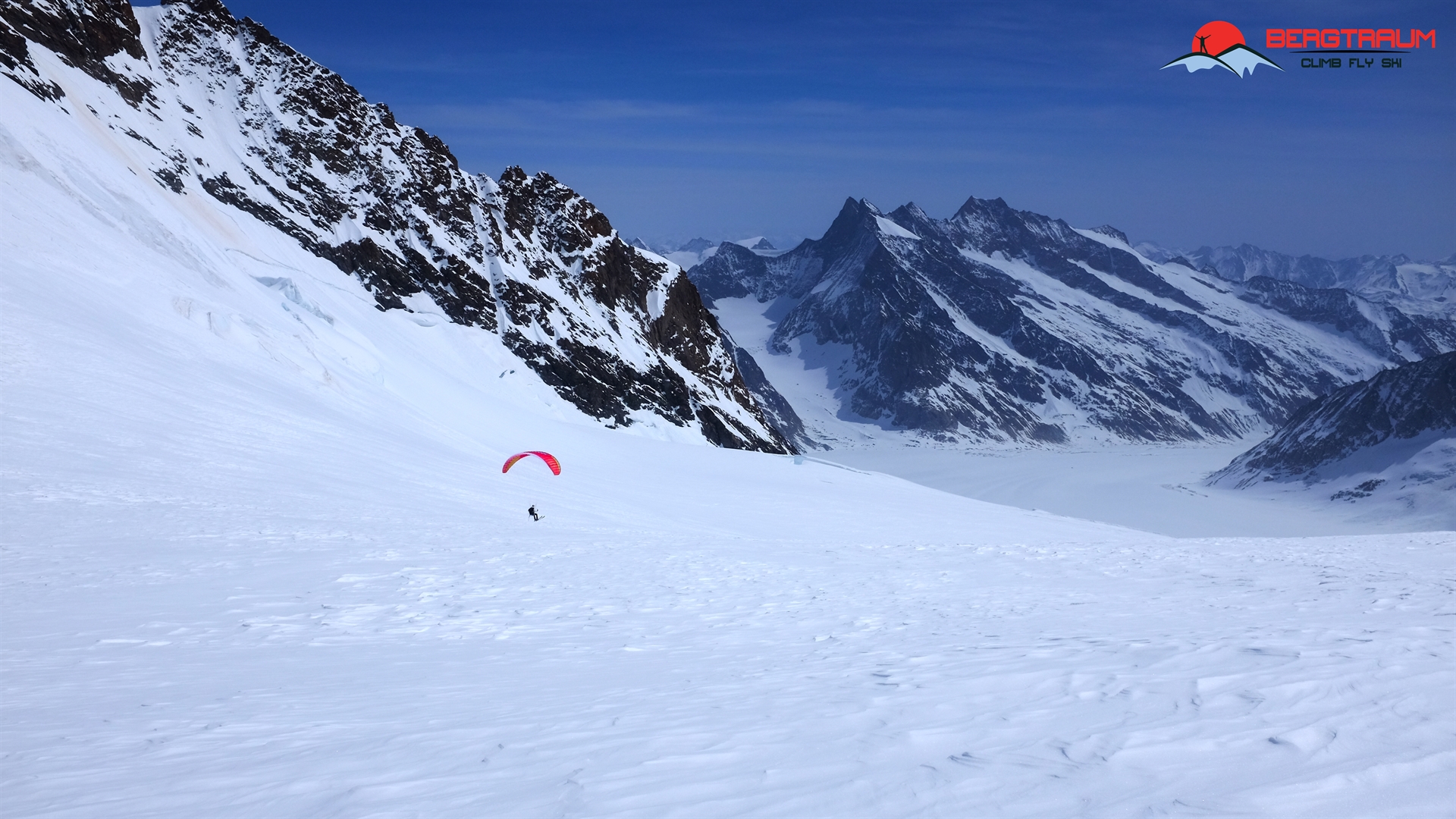 Beschreibung: Von der Konkordiahütte (2.850 m) zuerst 150 Hm über die Stahlleitern runter auf den Gletscher. Von dort dann Richtung Westen den Konkordiaplatz überqueren und am orografisch linken Rand des großen Aletschfirns weiter. Bei der Einmündung des Kranzbergfirns (von Norden kommend) steiler weiter Richtung NW zum Gletscherhornfirn. Nun super aufwärts zum Sattel (rund 3.750 m- Spalten) zwischen Gletscherhorn und Äbeni Flue. Die markante Nordostflanke hinauf auf den Grat- Skidepot entweder bei der Randkluft oder bei guten Schneebedingungen mitnehmen. Ab dem Grat noch kurz weiter zum Gipfel (3.961 m)
