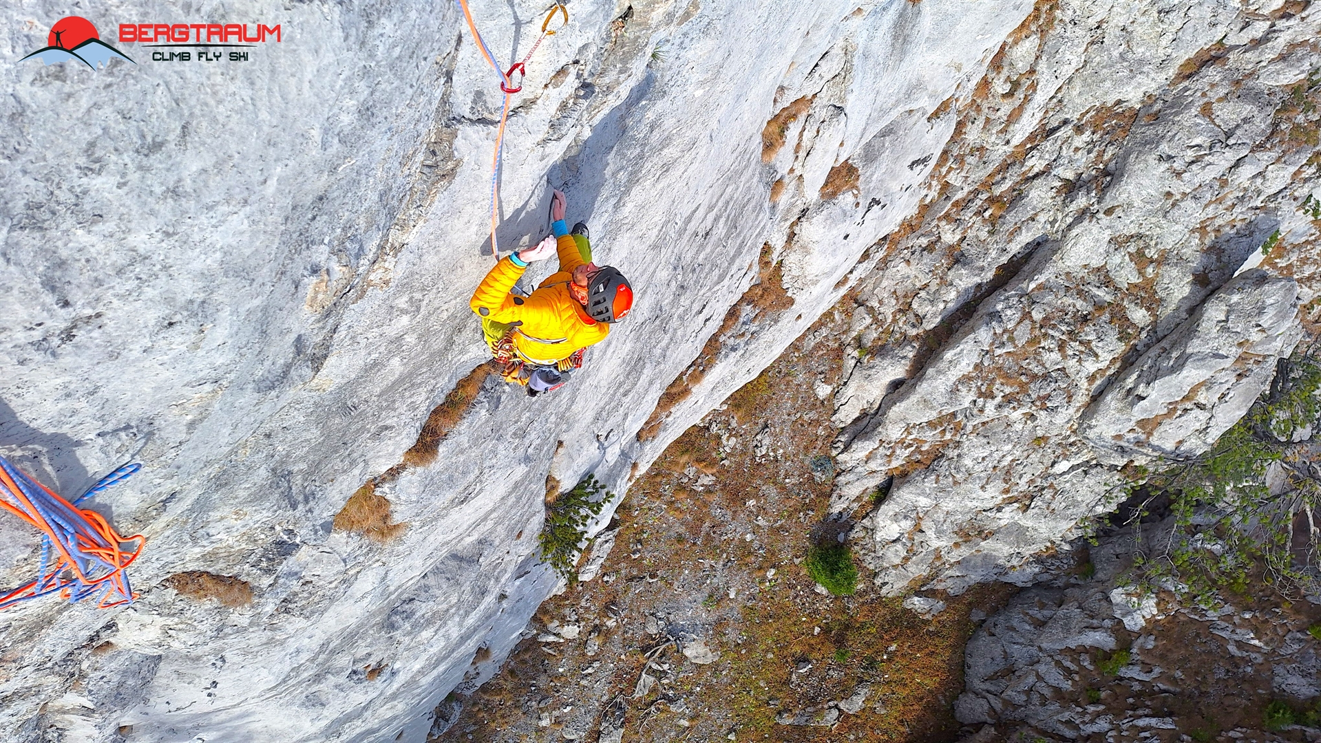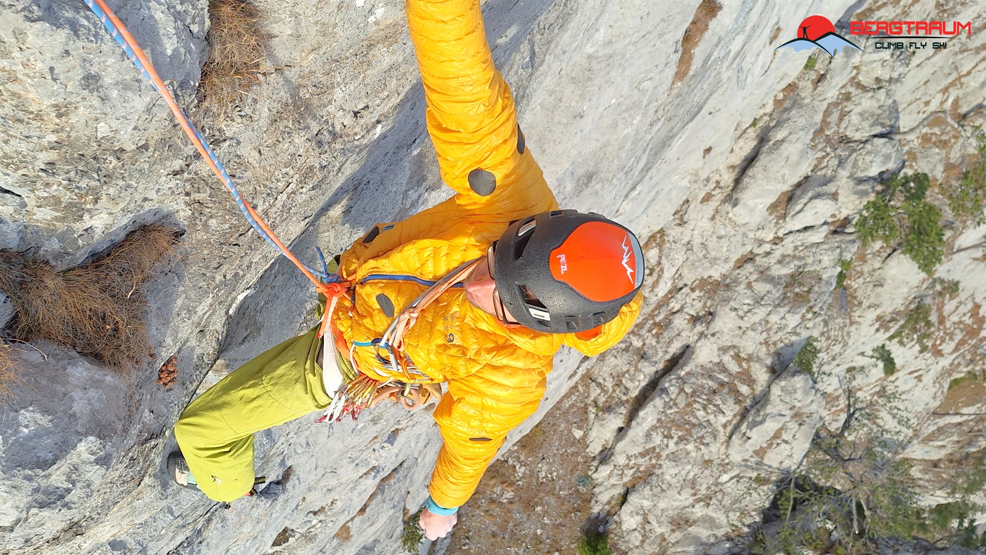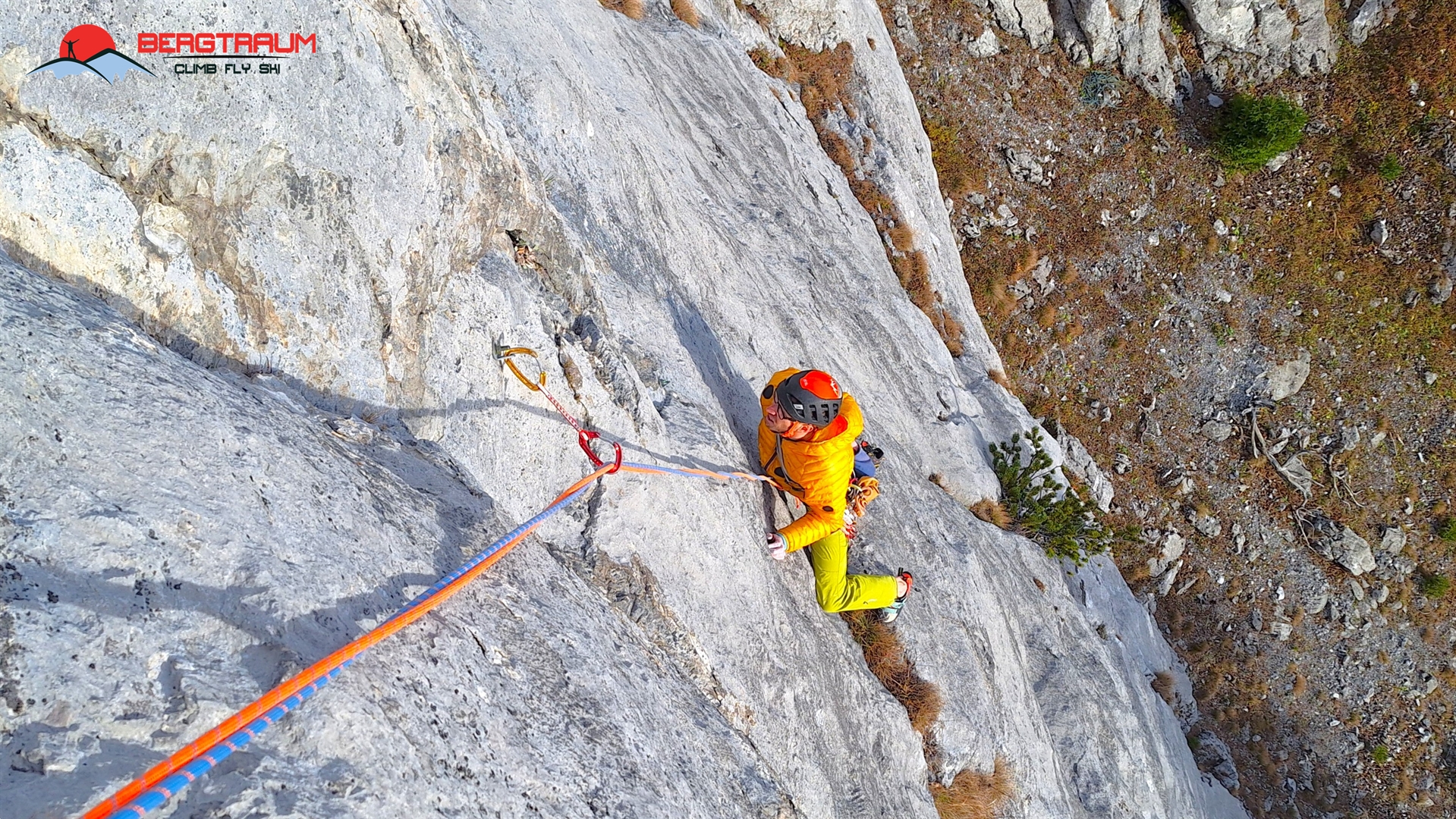 L14- VII+: anfangs leicht rechts aufwärts, dann markant nach links über eine kompakte Wandstelle drüber und abschließend gerade rauf zu Standplatz.