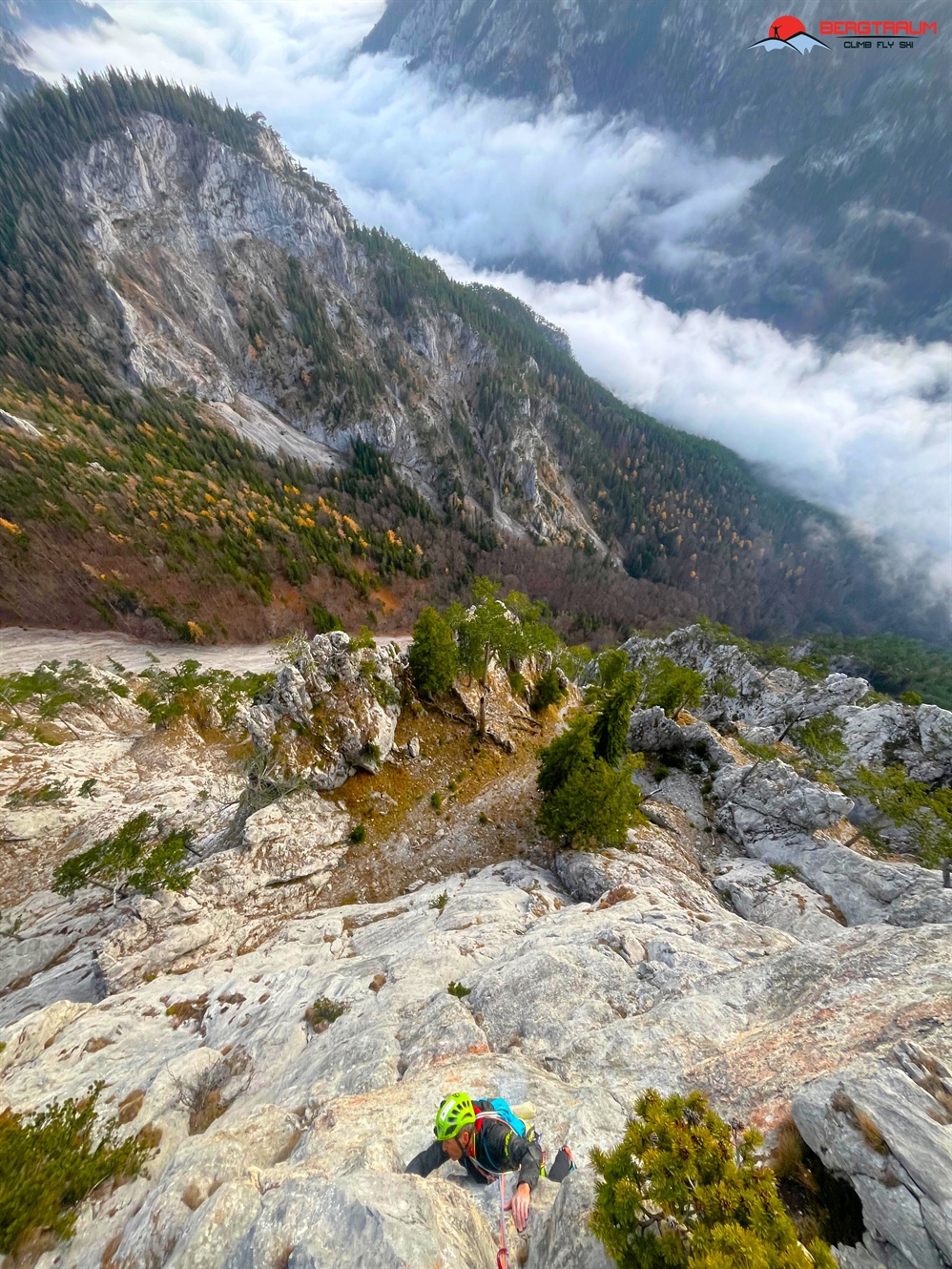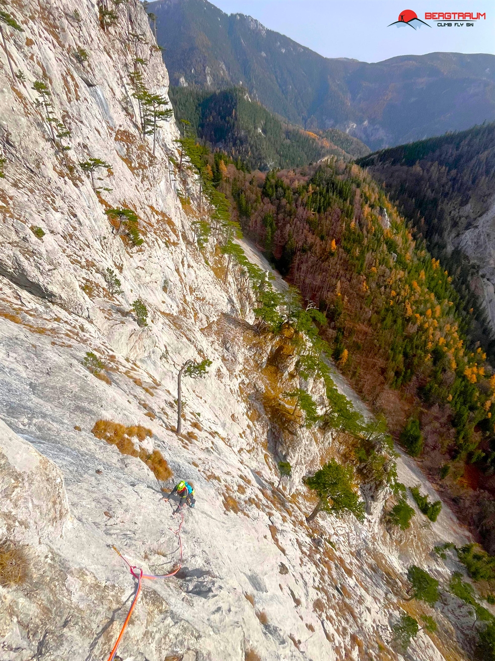 Zustieg: Vom Parkplatz den Weg in den Stadelwandgraben rund 25 Minuten aufwärts, bei den ersten Schuttfeldern unter der Stadelwand noch eine Kehre weiter und dann nach links auf Steigspuren unter die Wand. Nun neben einer Gedenktafel immer entlang des Wandfusses aufwärts bis zu einem markanten Baum. Über Schrofen schräg links aufwärts für rund 150 Meter zum Einstieg unter markanter Platte bei BH.