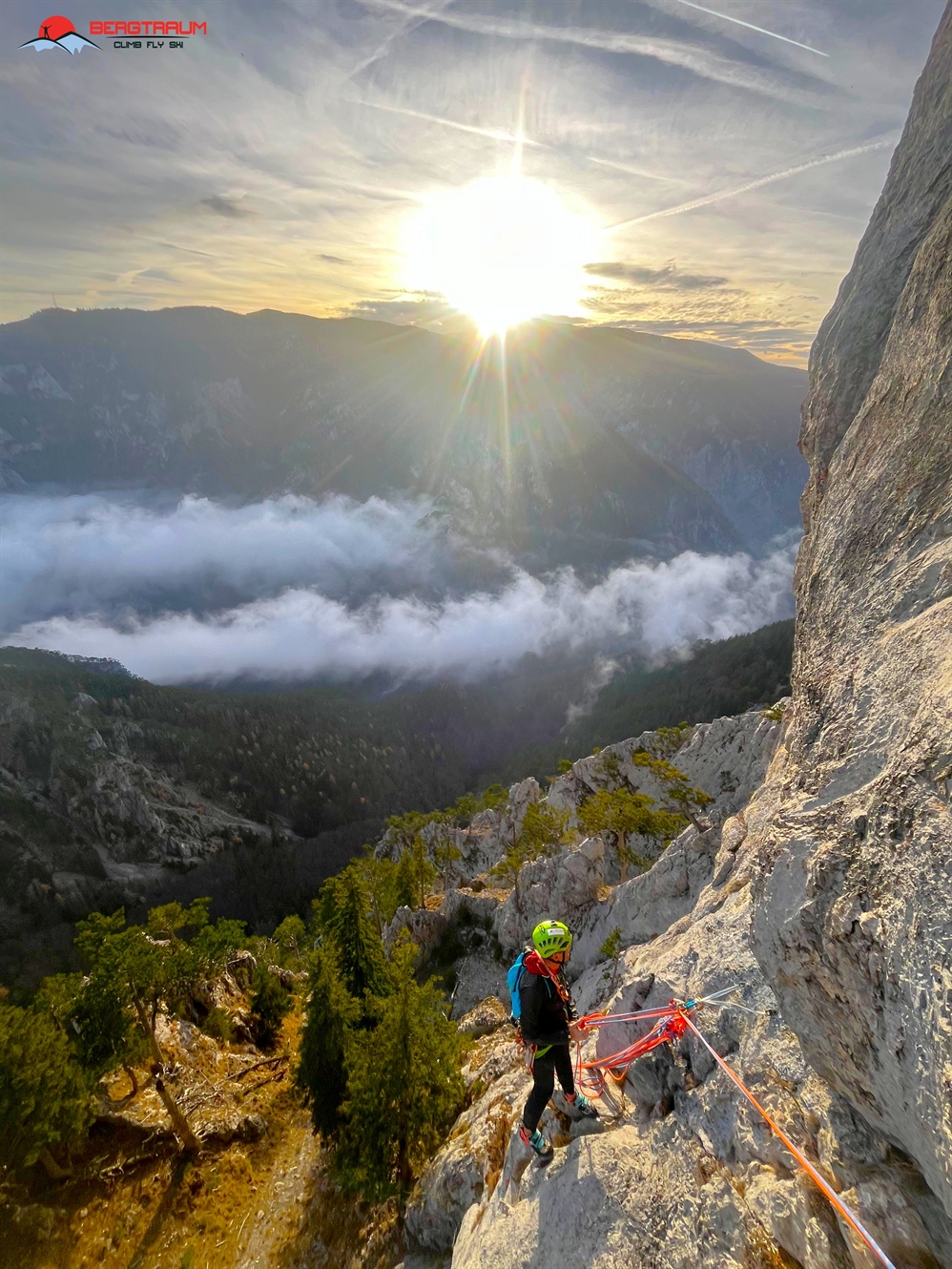 Ausrüstung: komplettes Felskletterzeugs, 8 Expressen, 2-3 lange Schlingen, ein mittlerer Satz friends 0,75 bis 2, Doppelseil 50 m.