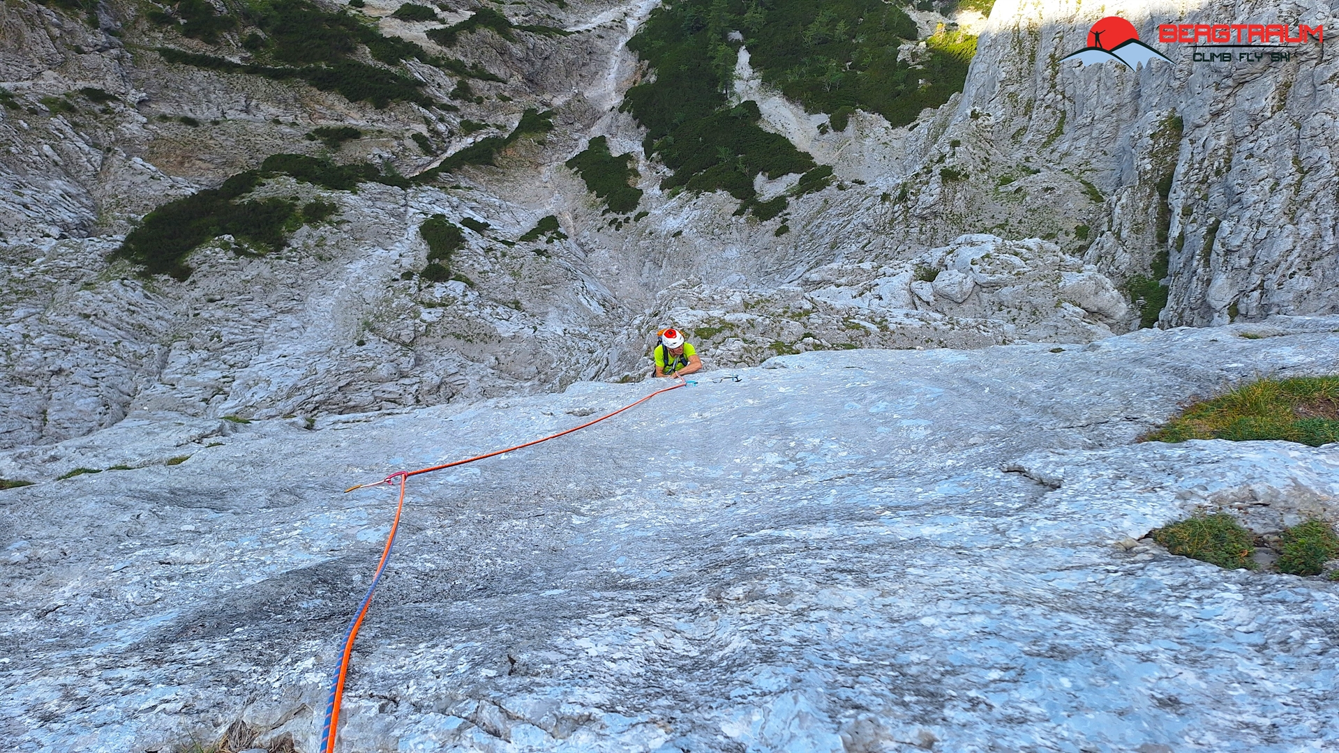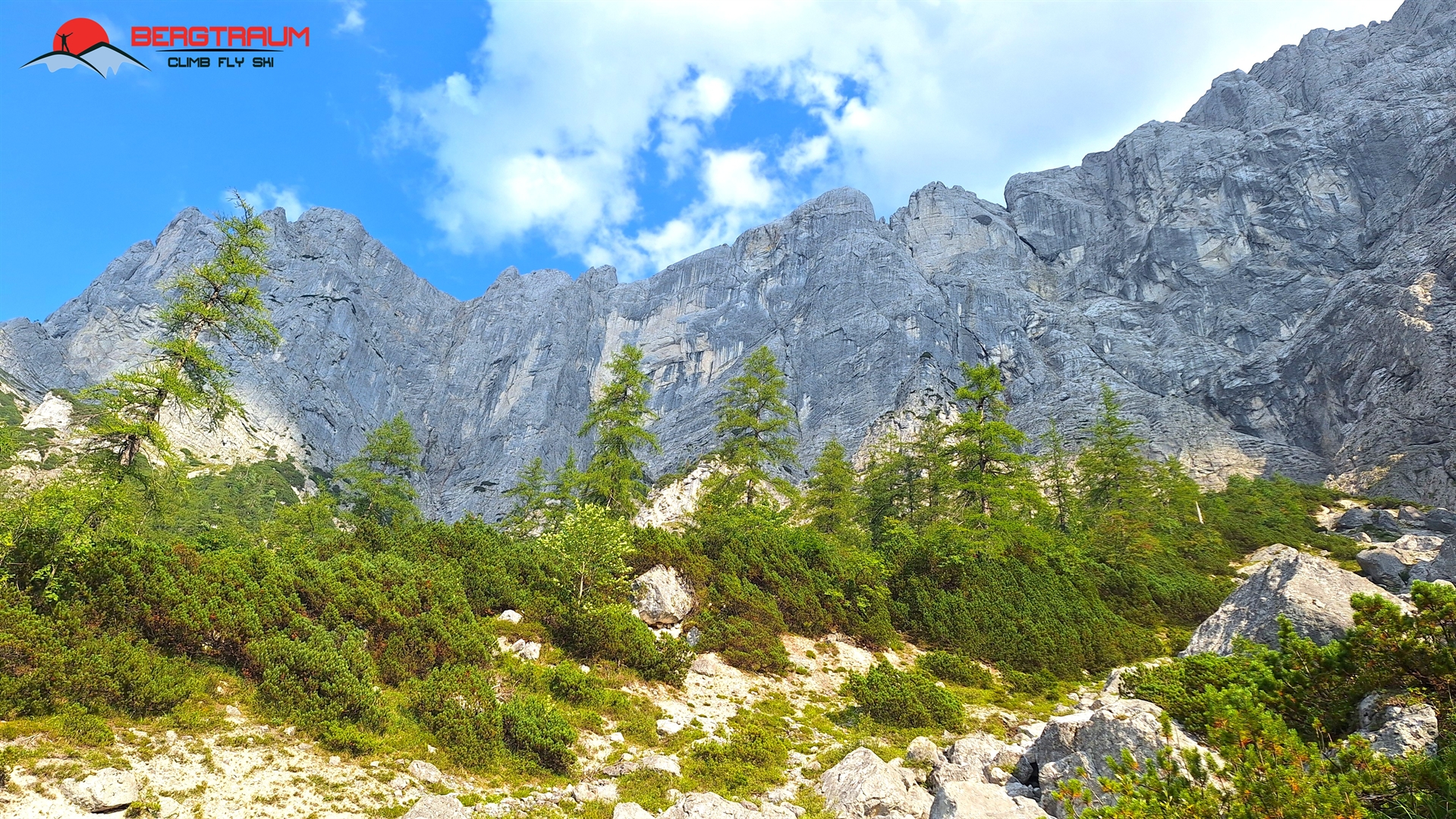 Zustieg: Vom PP an der Gesäusebundesstrasse (gebührenpflichtig, 6 €/ Tag) in südlicher Richtung immer entlang der roten Markierung des Höllersteiges steil aufwärts bis unter die ersten Felsen. Dort markant rechts weiter, über eine kurze stahlseilgesicherte Stelle drüber zum Einstieg bei Felsnische. (1,5 Std). Tipp: wir sind die ersten beiden SL (lt. Topo) seilfrei rauf zur zweiten Felsnische und begannen erst dort mit der Kletterei.