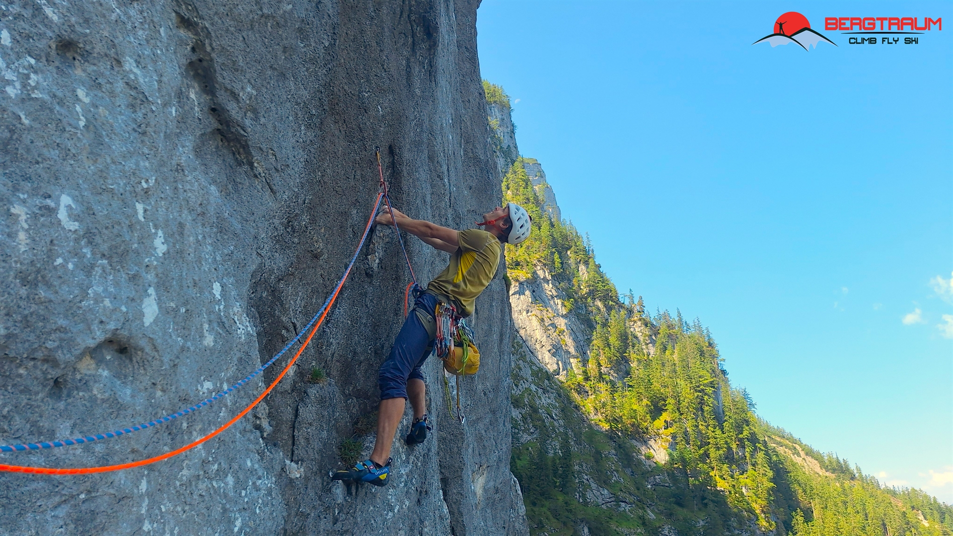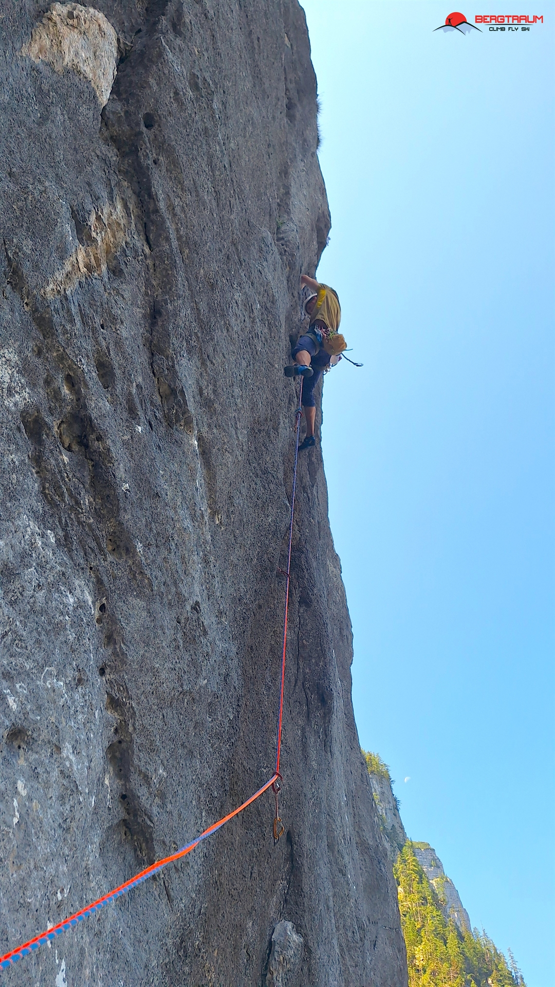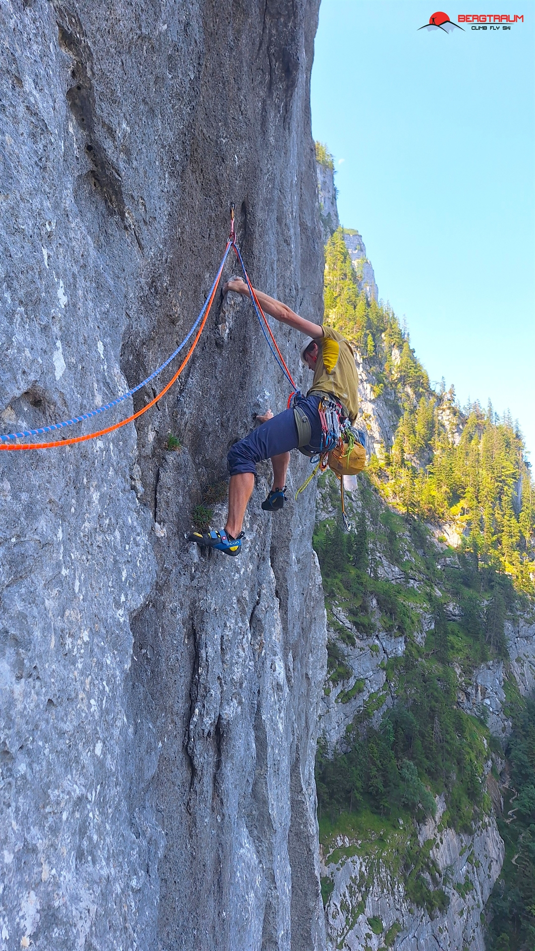 Charakter: Kompakter und wasserzerfressener Fels zeichnet diese Route aus. Trotz erfolgter Sanierung keinesfalls eine Plaisiertour. Teilweise noch vorhandene Normalhaken, eher weitere Abstände und im unteren Teil sandiger Fels verhindern die Auszeichnung einer uneingeschränkt empfehlenswerten Tour. Die Schwierigkeitsangaben können unsererseits nicht bestätigt werden. Für uns wars gefühlt um einen Grad schwerer. In Summe haben wir vier Rückzugskarabiner gefunden…
