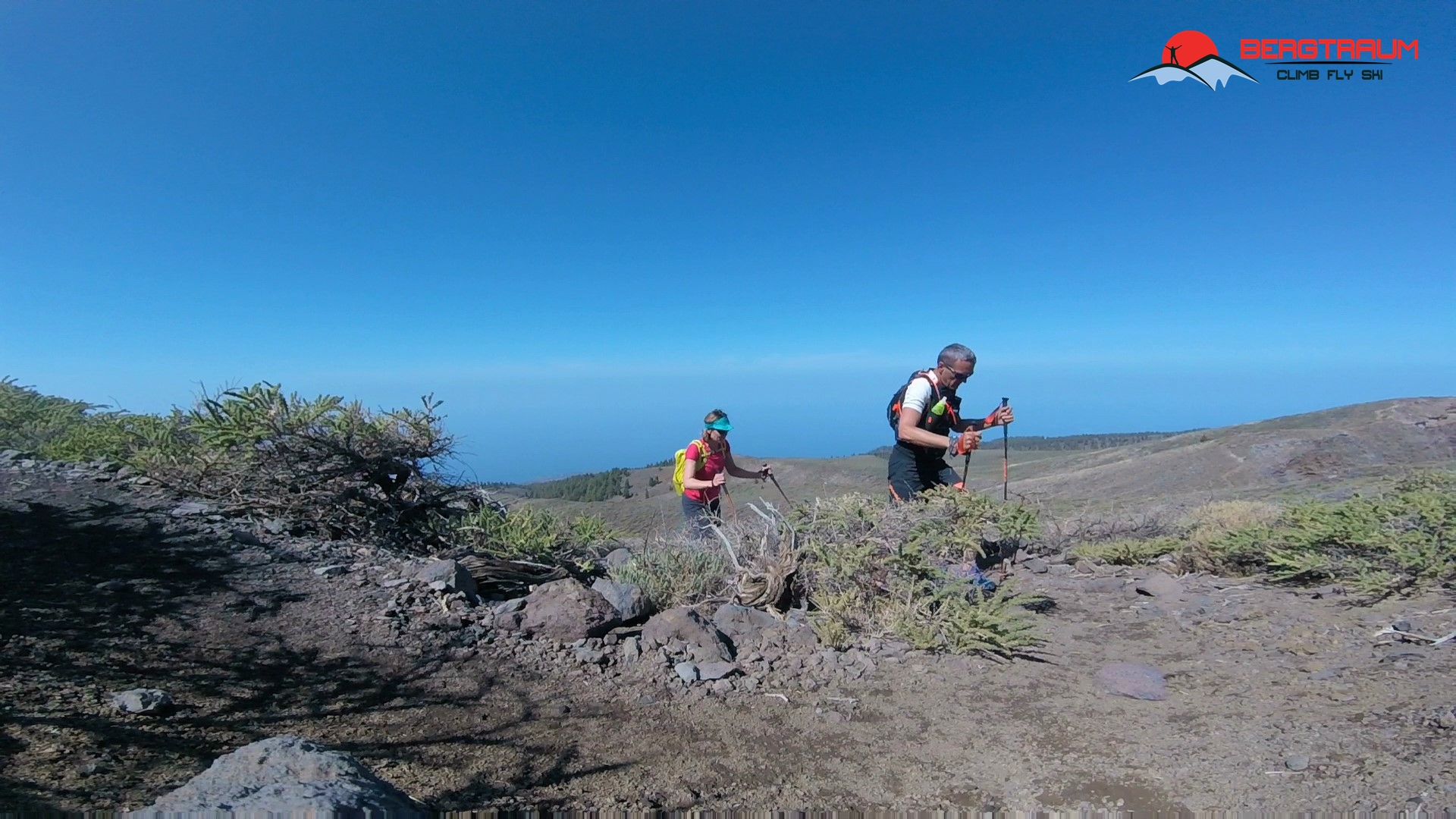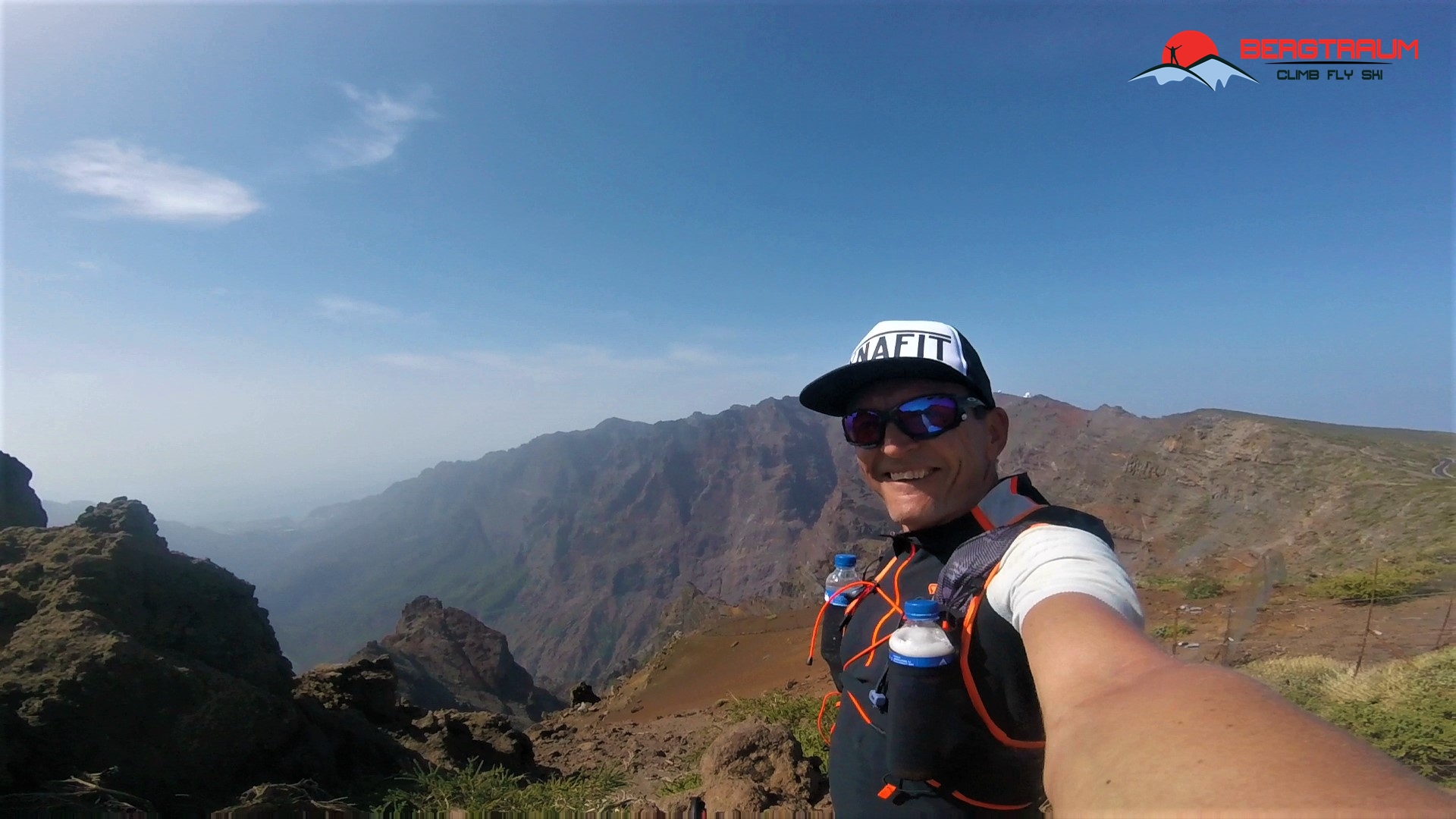 Gesagt- getan! Kurz nach 7 Uhr früh verabschiedete ich mich von Petra am Strand von Tazacorte, stieg über 18 Kilometer die ersten 2.500 Höhenmeter bergauf, umrundete den Krater in weiteren zehn Kilometern und schloss diese gewaltige Tour mit einem laangen downhill runter nach El Paso ab. Traumhaft schöne, sehr heiße, mehr als eindrückliche und megalässige Stunden bescherte mir diese Runde! Nach 42 Kilometer und 3.680 HM durfte ich ruhig mal ein wenig müde sein! 😊