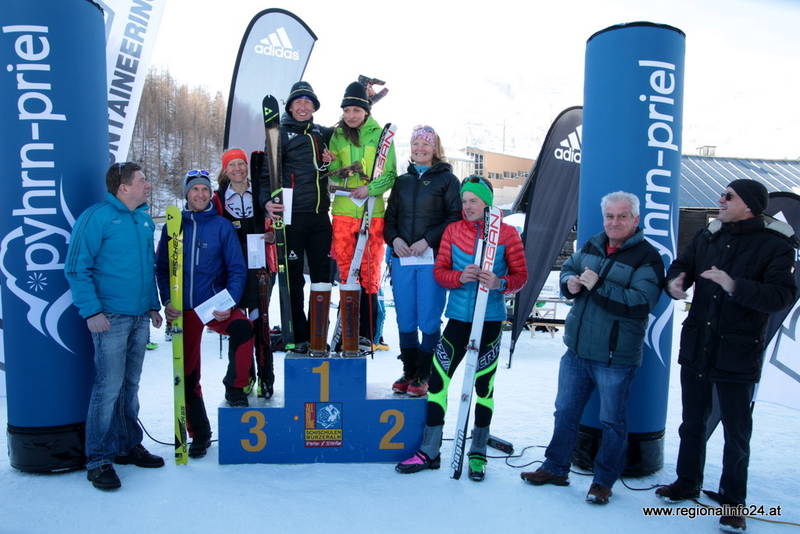 Und wer mich kennt, weiss, dass ich Spezialist im „ Verfahren“ bin – aber bei DIESEN super Markierungen gelang das nicht mal mir 😉 Auch so ging` s überraschend gut. Zuerst auf Rang 4 der Damenwertung, kämpfte ich mich nach der ersten Abfahrt auf Position Zwei vor. Es war wirklich ein lässiger Kampf mit meinen Verfolgerinnen. Am Gipfel nach der Tragepassage war ich noch immer vorne, aber nach der letzten steilen Abfahrt folgte eine flache Passage – und da düste mir die Renate vor. Da eine kräfteraubende Skatingpassage folgte, wusste ich, dass ich chancenlos war, da sie auch eine gute Langläuferin ist.